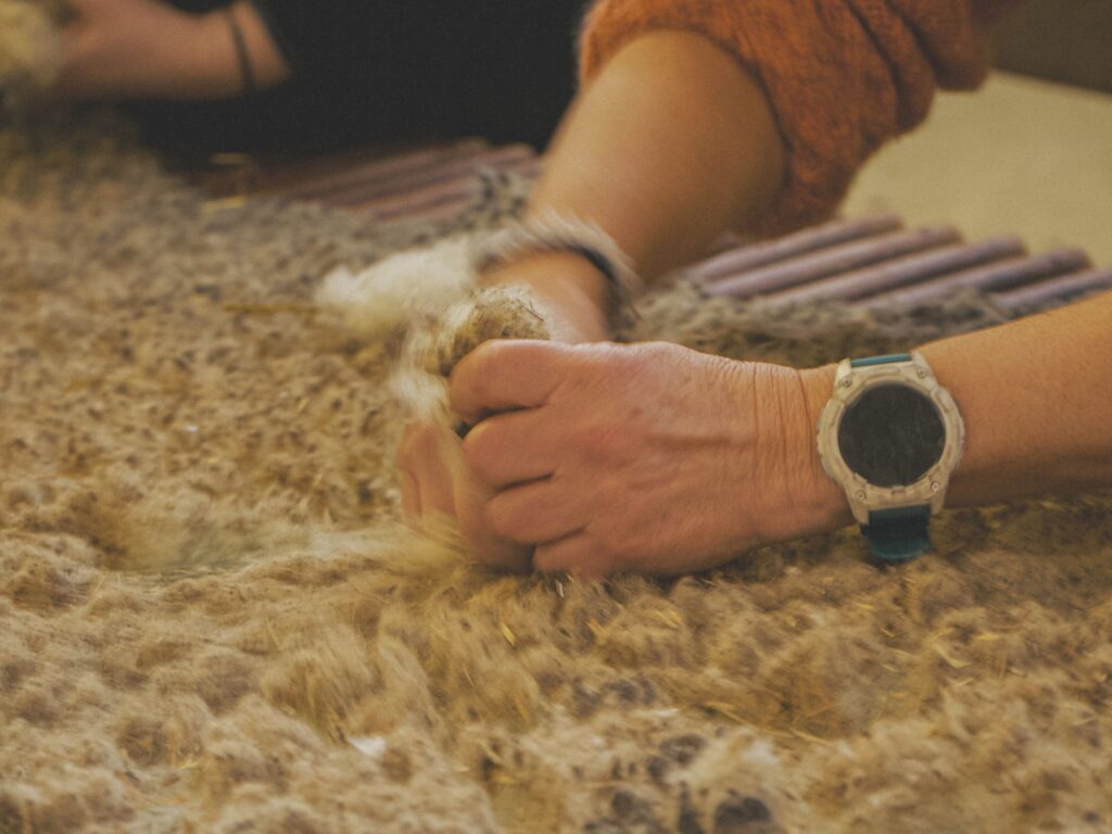 Je me suis demandé comment, à mon échelle, je pouvais m’inscrire dans cette dynamique et proposer une initiative tangible. C’est comme ça qu’est née l’idée de me lancer dans ce projet autour du tapis de laine : une manière de valoriser une ressource locale en m’inscrivant directement dans l’économie du territoire.